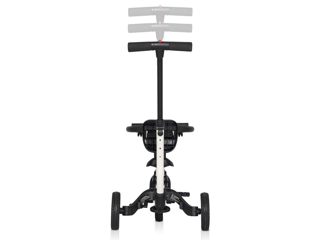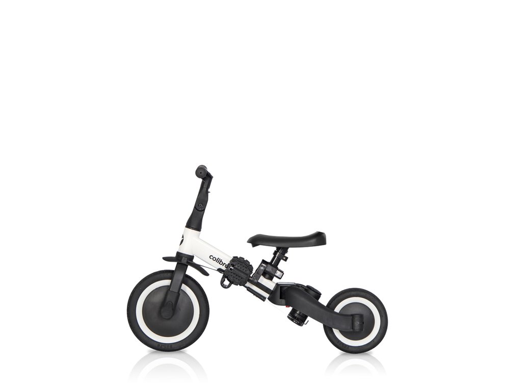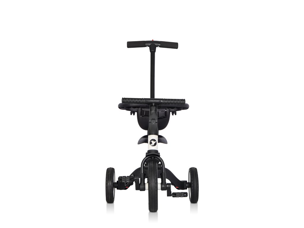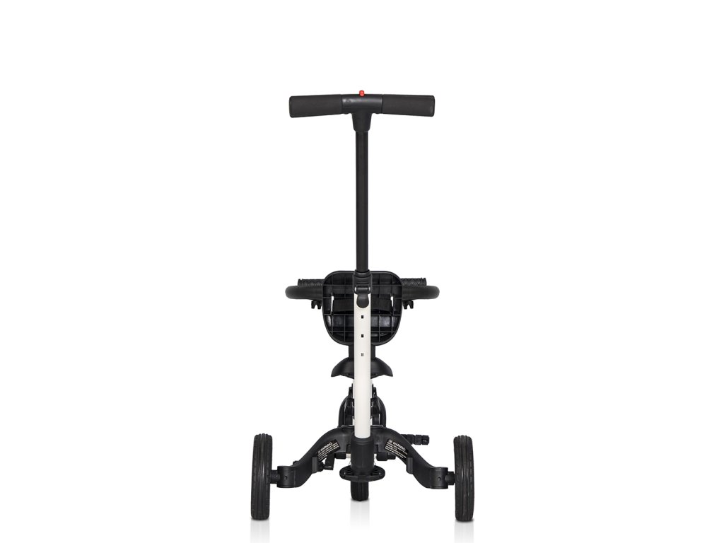 Pro děti od 3 do 4 let. Díky inovativnímu patentovanému systému, který stiskne pouze 3 tlačítka a nedemontuje žádné prvky, přeměníte tříkolku na praktické vzdělávací odrážedlo. Jednoduše spojte zadní kola do jednoho stabilního dvojitého kola a demontujte pedály.
