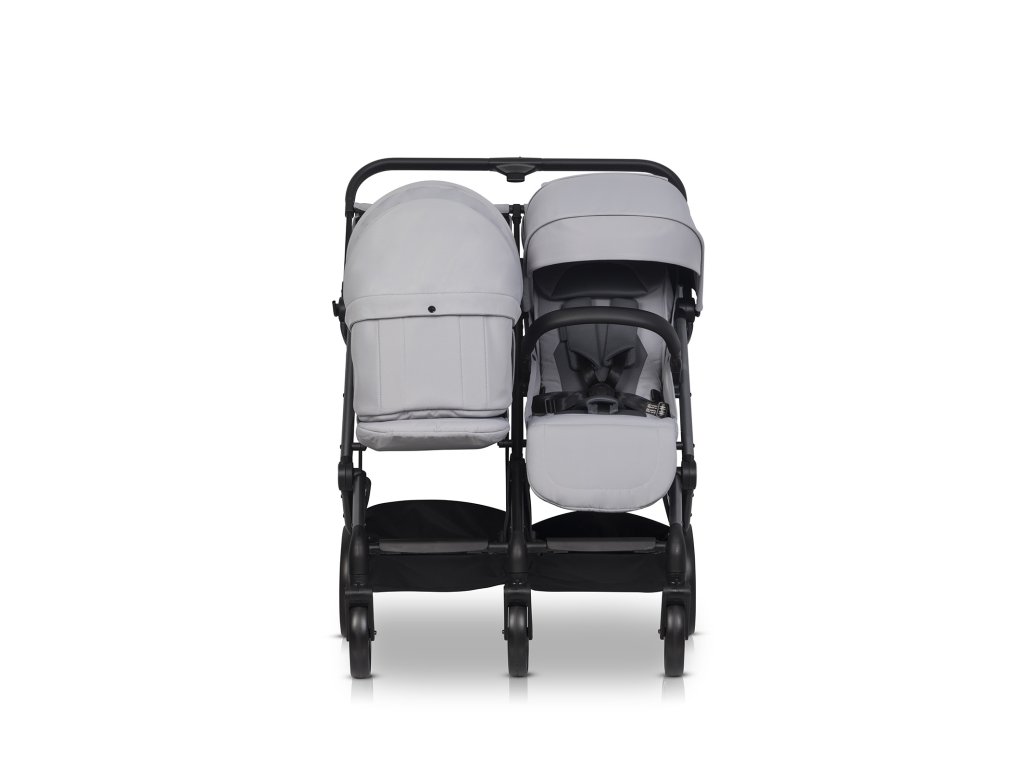 Gondola montuje na naplocho rozložený sedák kočárku pomocí systému zapínání. Korbička na kočárek ECHO má karabiny, které připínáme na kolíčky ve tvaru písmene „D“ umístěné po stranách sedáku. Díky nim je korbička pevně usazena v kočárku a zaručuje bezpečnost dítěte.