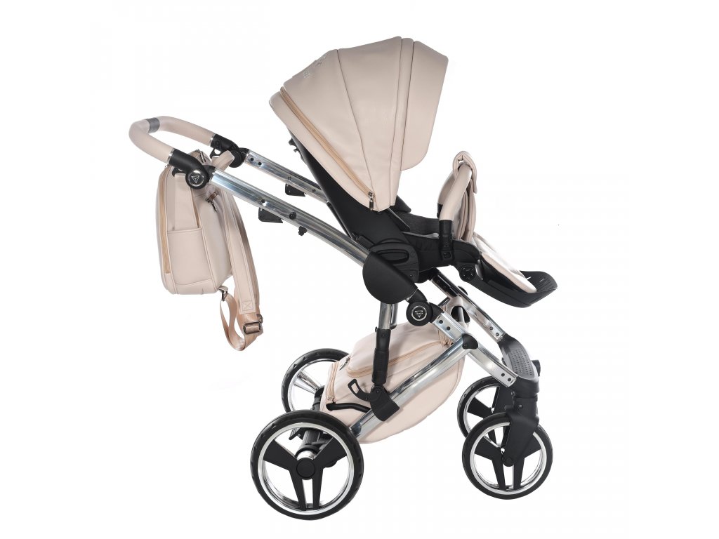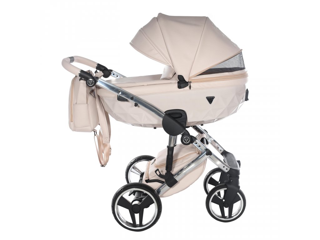 Junama Teddy má klasickou prostornou korbičku a konstrukci vybavenou pro chůzi v jakémkoli ročním období - s inovativním systémem větrání, prodlouženou stříškou a dostatkem volného prostoru v korbičce.