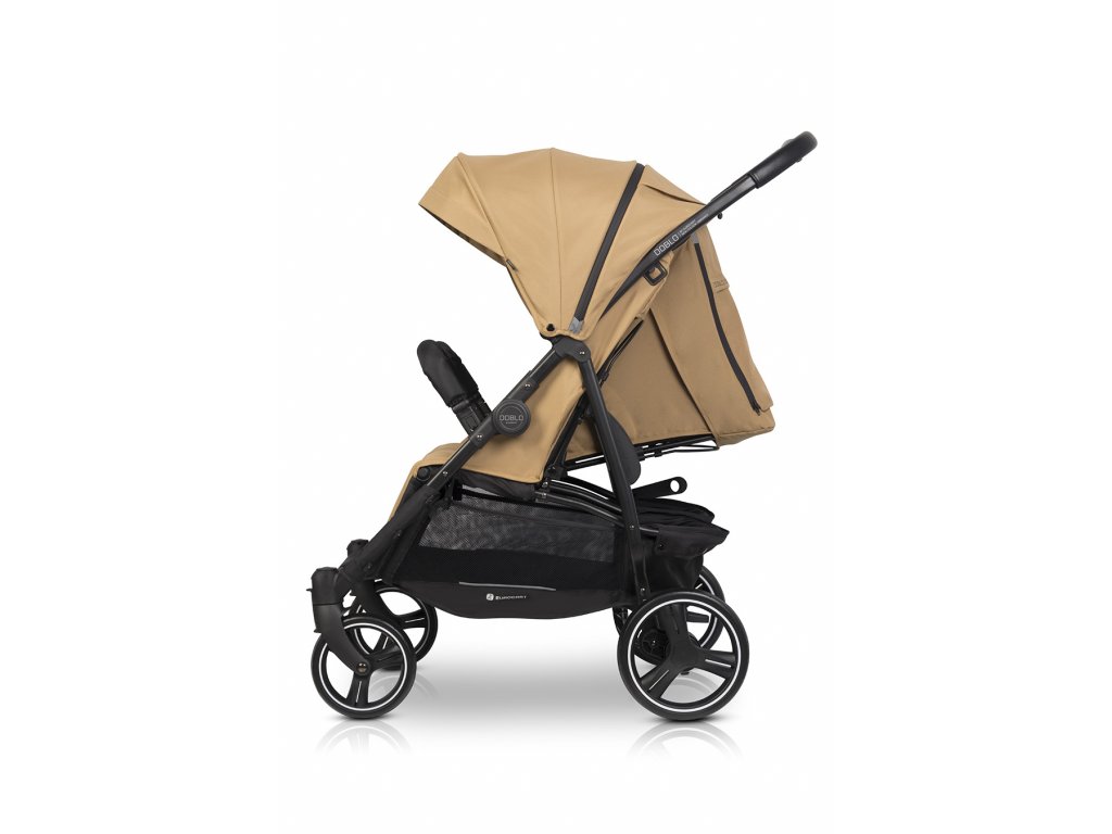 Kočárek pro dvojčata nebo děti rok co rok DOBLO má odpružení všech kol. Přední kola jsou samonastavitelná s možností aretace pro jízdu rovně. DOBLO vás překvapí svou manévrovatelností a snadným dobýváním. Mnoho uživatelů odhaduje, že jeho řízení je pohodlnější než u více kočárků určených pro jedno dítě.