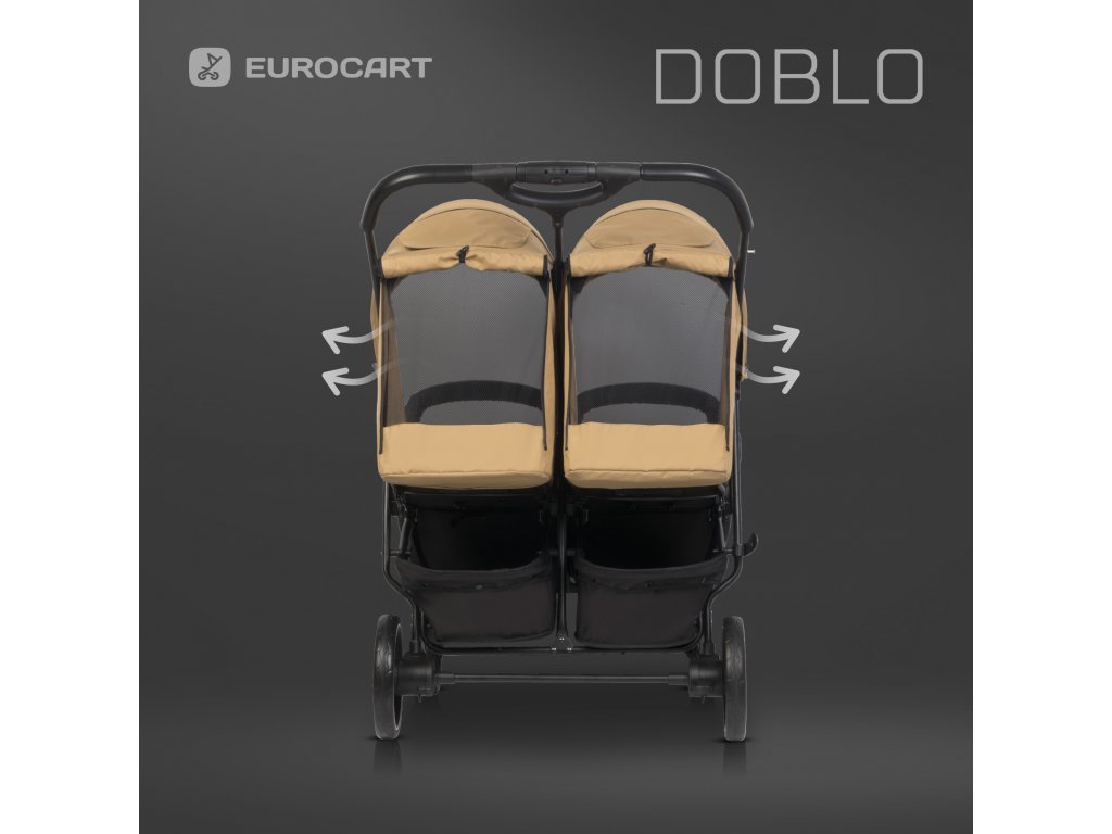 DOBLO v základním provedení je kočárek dvěma sedadly pro děti do 22 kg. Lze jej však přeměnit na multifunkční kočárek 2 v 1 pro dvojčata dokoupením navíc dvou měkkých korbiček (kojenecké vložky) a odpovídajícím způsobem přeměnit sedák nebo kočárek, který je kombinací jednoho vycházkového sedátka pro starší dítě do 22 kg a jedné korbičky pro mladší dítě do 9 kg. To vše dělá z DOBLO značky EURO-CART jeden z nejvšestrannějších kočárků na trhu.