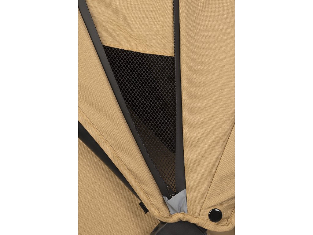 Za slunečných dnů jistě budou hodit velké sluneční budky s dalšími odnímatelnými sekcemi a slunečními stříškami. Interiéry budek jsou černé, aby ještě lépe zastavily sluneční paprsky. Tkaniny mají filtr UV50+. Bezpečnost vašich dětí zaručuje bezpečnostní certifikát potvrzující shodu kočárku s normou EN 1888-1 a EN1888-2:2018. Sedadla jsou vybavena 5bodovými bezpečnostními pásy a měkké korbičky mají 2 nezávislé systémy zapínání na kočárek.