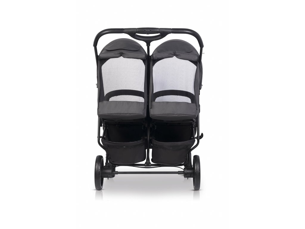 Kočárek pro dvojčata nebo děti rok co rok DOBLO má odpružení všech kol. Přední kola jsou samonastavitelná s možností aretace pro jízdu rovně. DOBLO vás překvapí svou manévrovatelností a snadným dobýváním. Mnoho uživatelů odhaduje, že jeho řízení je pohodlnější než u více kočárků určených pro jedno dítě.