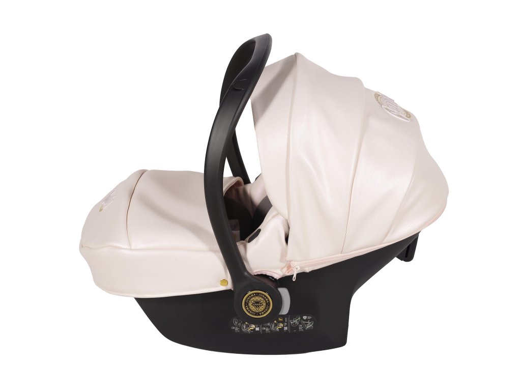 Kompletní travel system. Autosedačka se přímo připojí na rám kočárku — přenesete spící dítě z auta na kočárek bez probuzení, bez sundávání pásů. Bezpečnostní standard I-Size chrání dítě od prvních dnů.