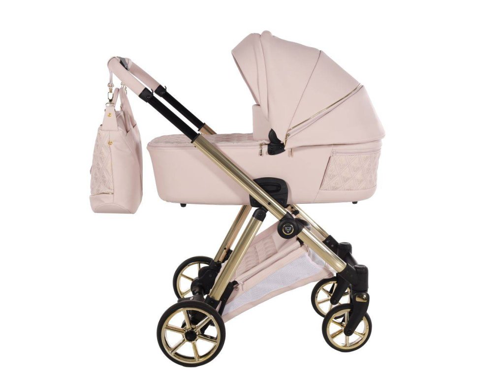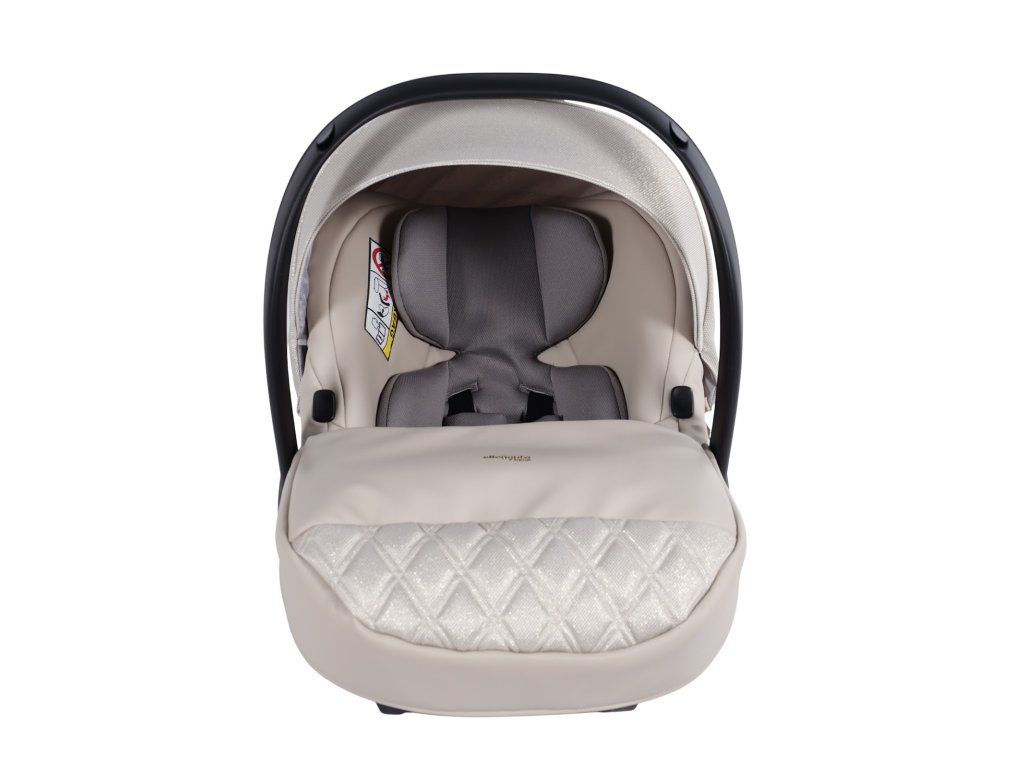 Exkluzivní, čalouněná korba zdobená detaily ve stylu Art Deco je prostorná a elegantní. Vnitřek je vyložen hypoalergenní, prodyšnou tkaninou, která zajišťuje zdravé podmínky a komfort pro dítě. Nastavitelné opěradlo umožňuje přizpůsobit polohu potřebám dítěte.
