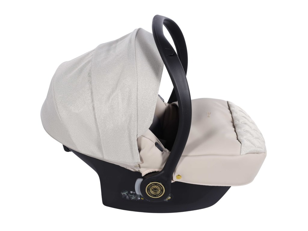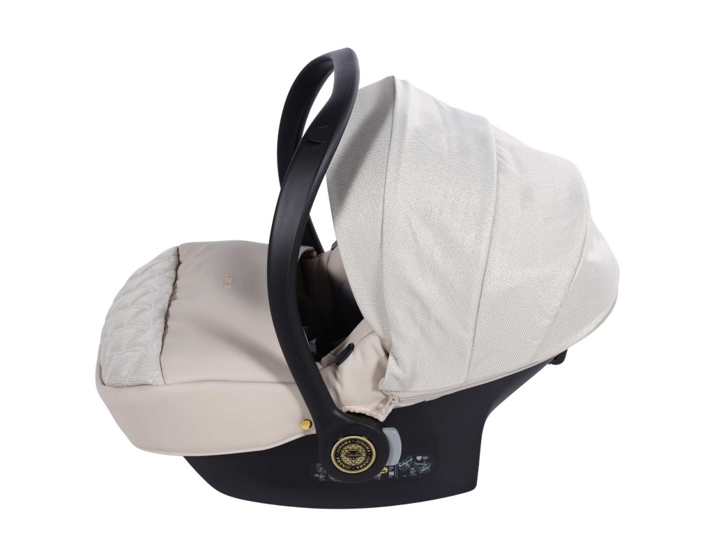 Kompletní travel system. Autosedačka se přímo připojí na rám kočárku — přenesete spící dítě z auta na kočárek bez probuzení, bez sundávání pásů. Bezpečnostní standard I-Size chrání dítě od prvních dnů.