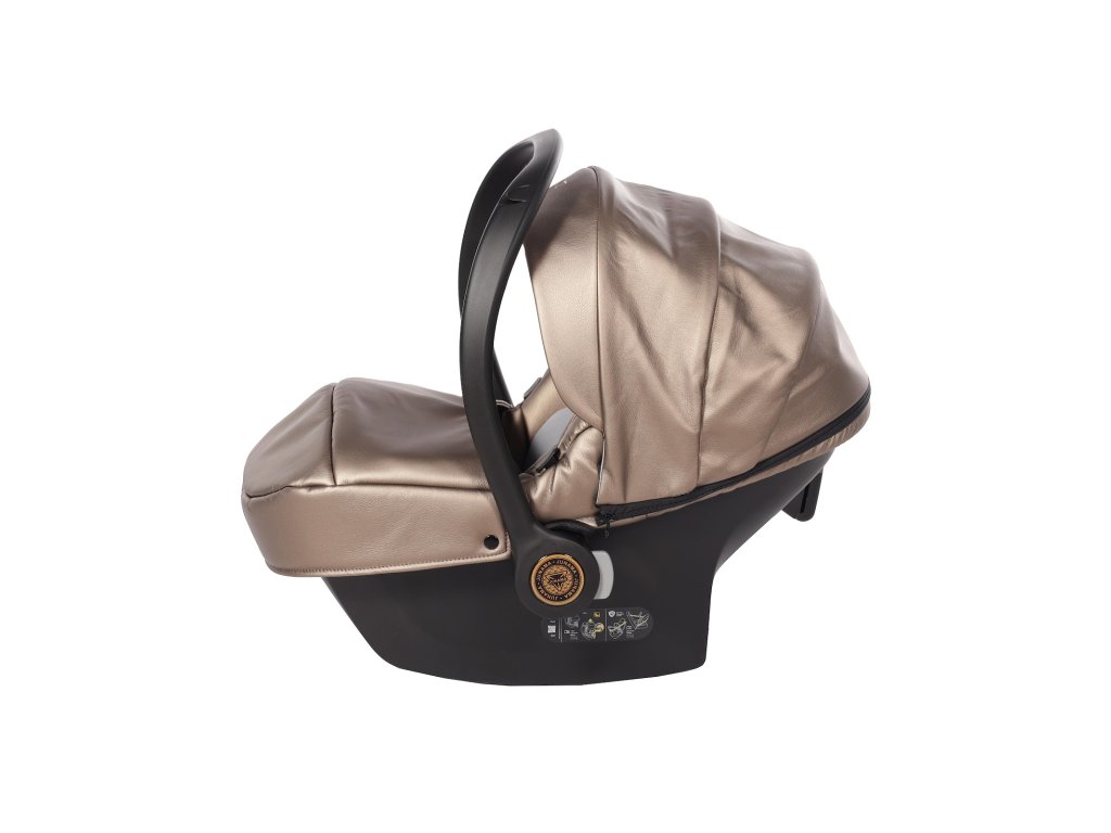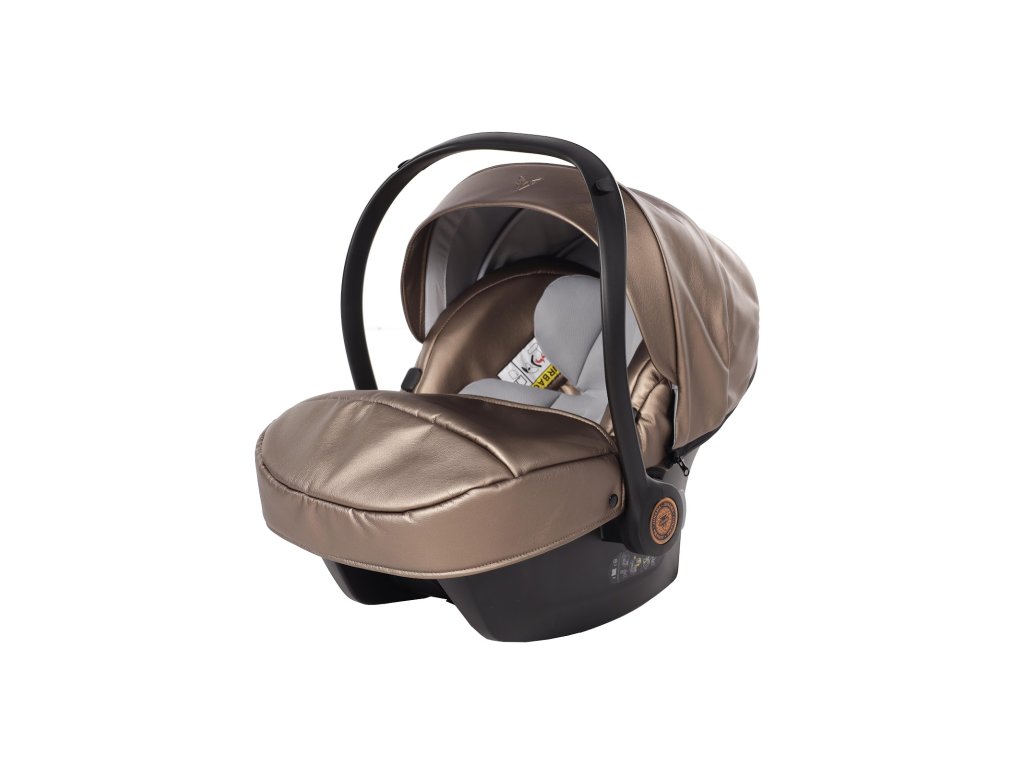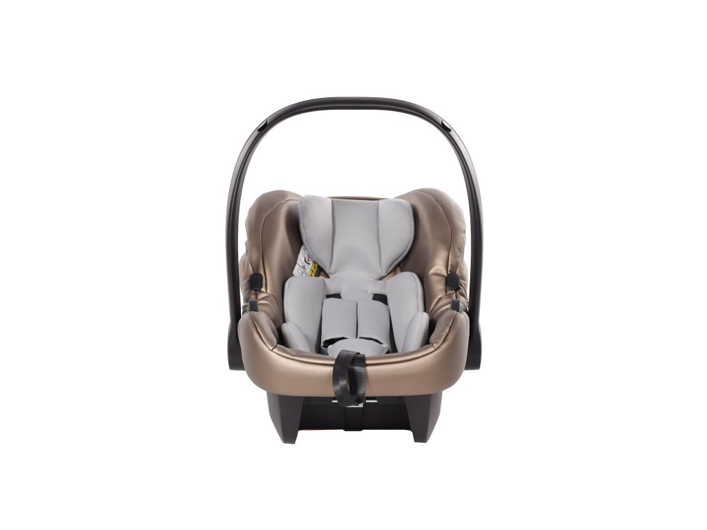 Kompletní travel system. Autosedačka se přímo připojí na rám kočárku — přenesete spící dítě z auta na kočárek bez probuzení, bez sundávání pásů. Bezpečnostní standard I-Size chrání dítě od prvních dnů.