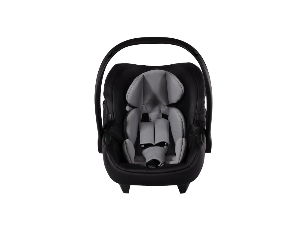 Kompletní travel system. Autosedačka se přímo připojí na rám kočárku — přenesete spící dítě z auta na kočárek bez probuzení, bez sundávání pásů. Bezpečnostní standard I-Size chrání dítě od prvních dnů.