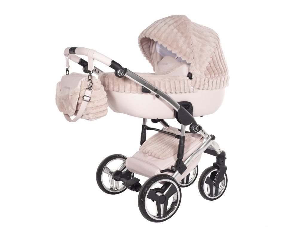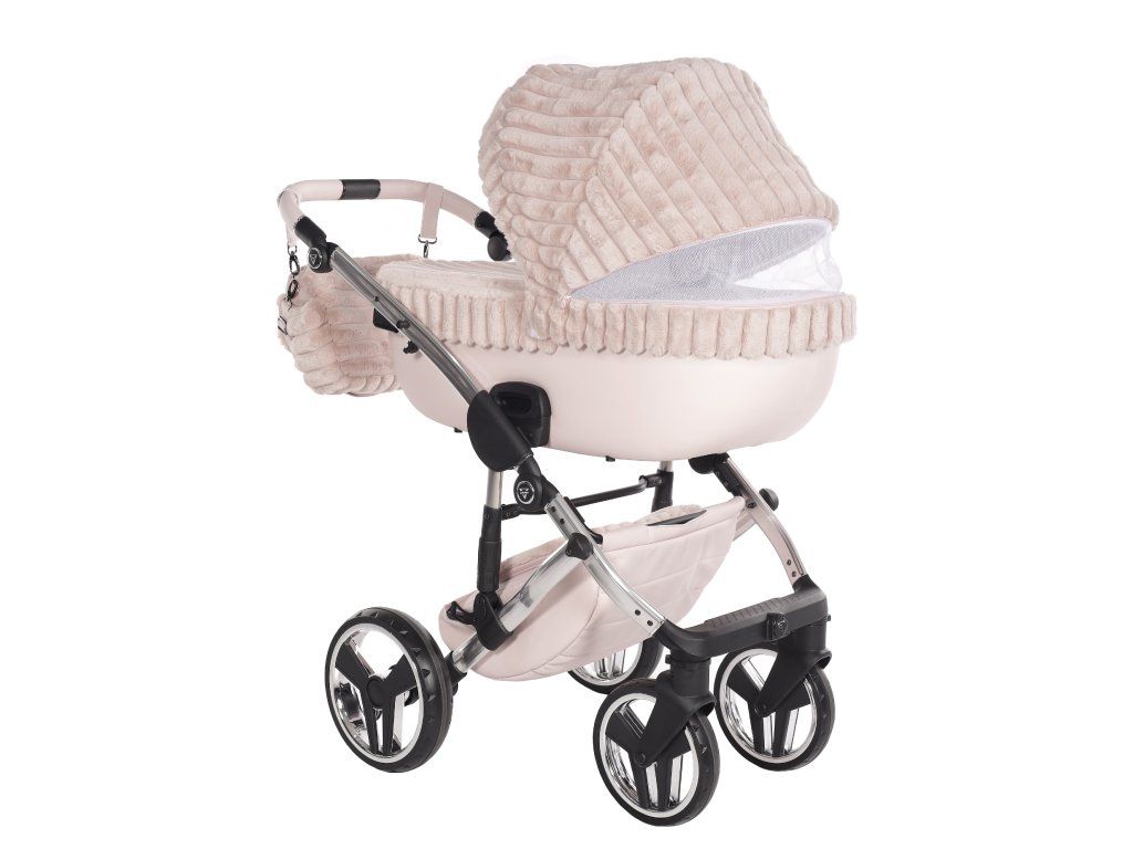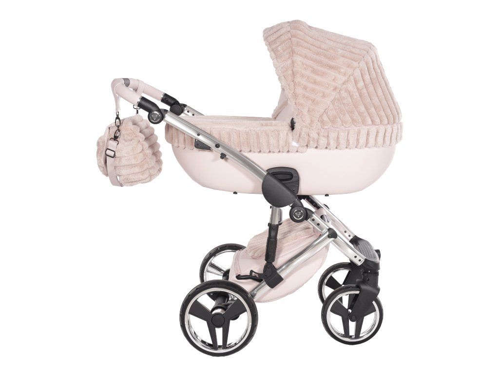 Kočárek Junama Muffy spojuje elegantní design s praktičností. Jako kombinovaný systém 2v1 nabízí hlubokou korbu pro novorozence i sportovní sedačku pro starší děti. Anti-shock odpružení zajišťuje pohodlnou jízdu v každém terénu. Dostupný v barvách Růžová a Béžová. • 2v1 – Hluboká korba pro novorozence + Sportovní sedačka od 6 měsíců • 3v1 – Hluboká korba pro novorozence + Sportovní sedačka od 6 měsíců + Autosedačka Junama Cosmo I-Size (0–13 kg, od narození) v barvě kočárku • 4v1 – Hluboká korba pro novorozence + Sportovní sedačka od 6 měsíců + Autosedačka Junama Cosmo I-Size (0–13 kg, od narození) v barvě kočárku + IsoFix báze pro bezpečnou a rychlou instalaci • 4v1 otočná báze – Hluboká korba pro novorozence + Sportovní sedačka od 6 měsíců + Autosedačka Junama Cosmo I-Size (0–13 kg, od narození) v barvě kočárku + Otočná IsoFix báze 360°Doplňkové parametry