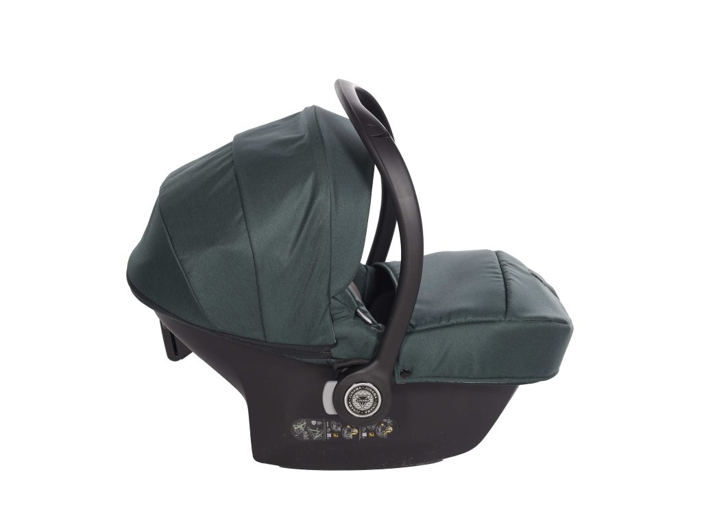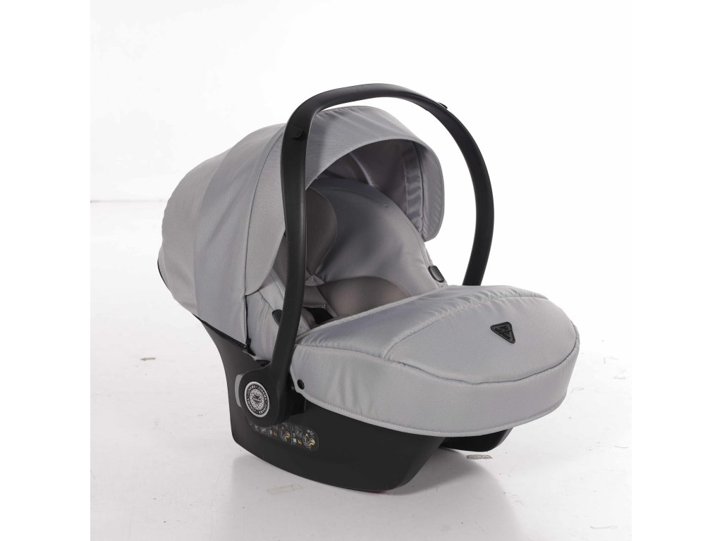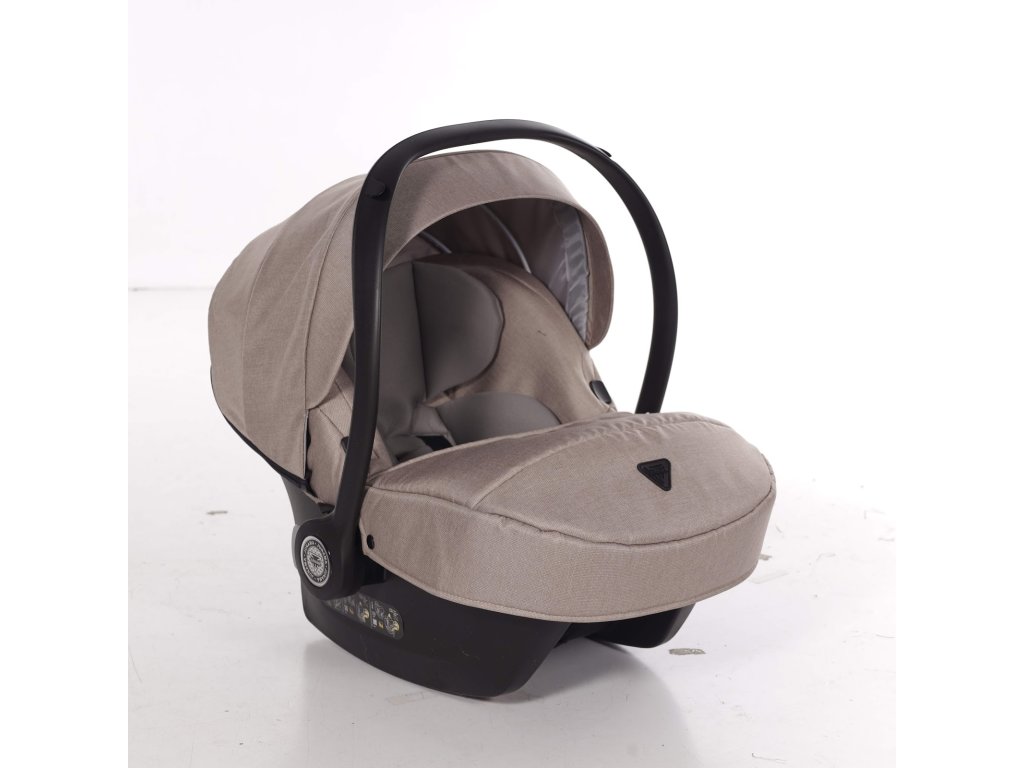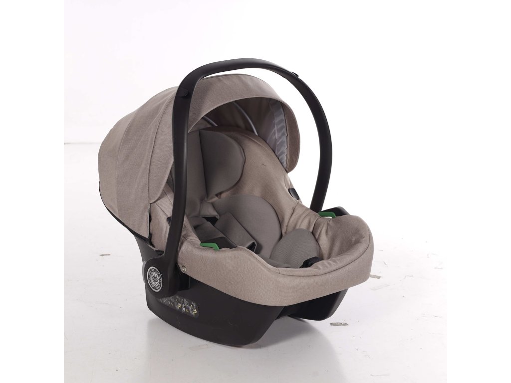 Kompletní travel system. Autosedačka se přímo připojí na rám kočárku — přenesete spící dítě z auta na kočárek bez probuzení, bez sundávání pásů. Bezpečnostní standard I-Size chrání dítě od prvních dnů.
