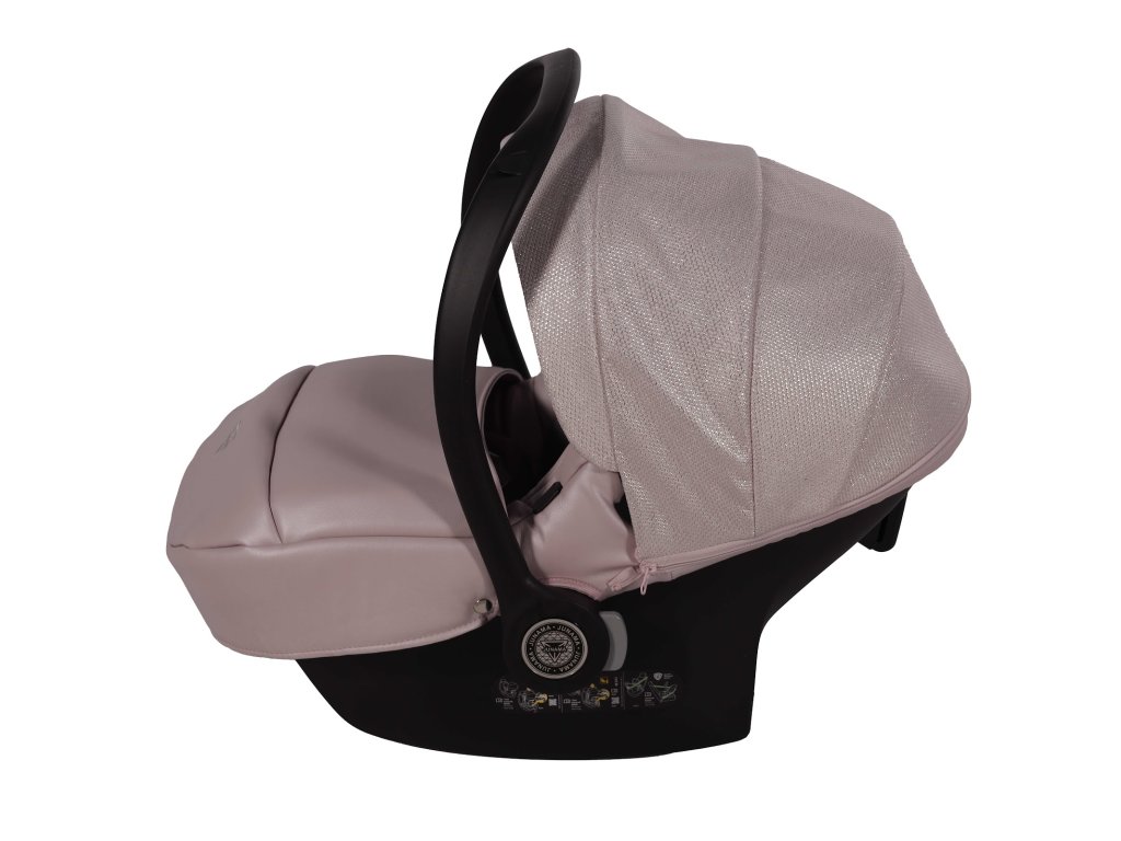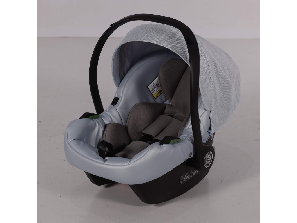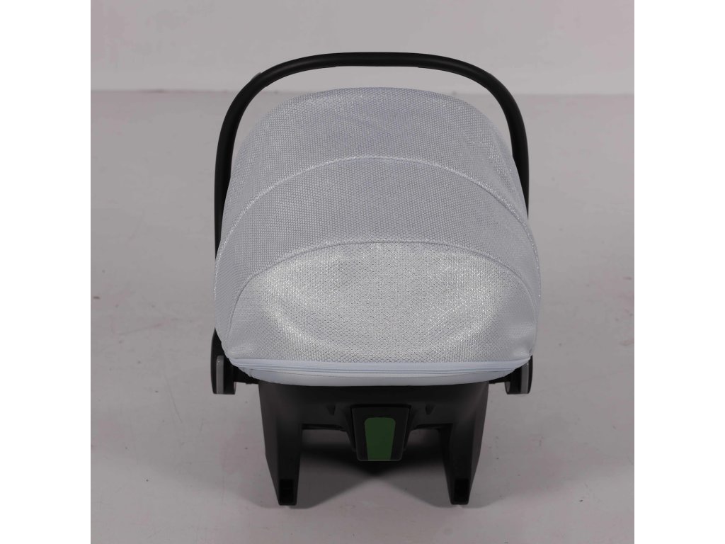 Kompletní travel system. Autosedačka se přímo připojí na rám kočárku — přenesete spící dítě z auta na kočárek bez probuzení, bez sundávání pásů. Bezpečnostní standard I-Size chrání dítě od prvních dnů.