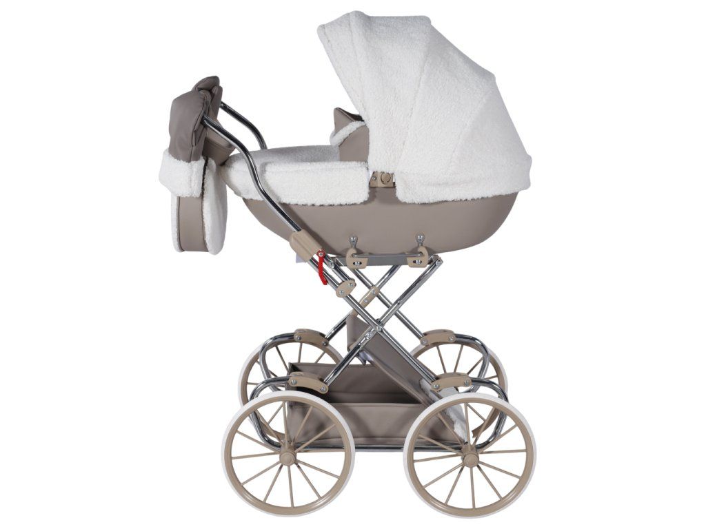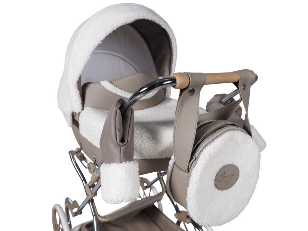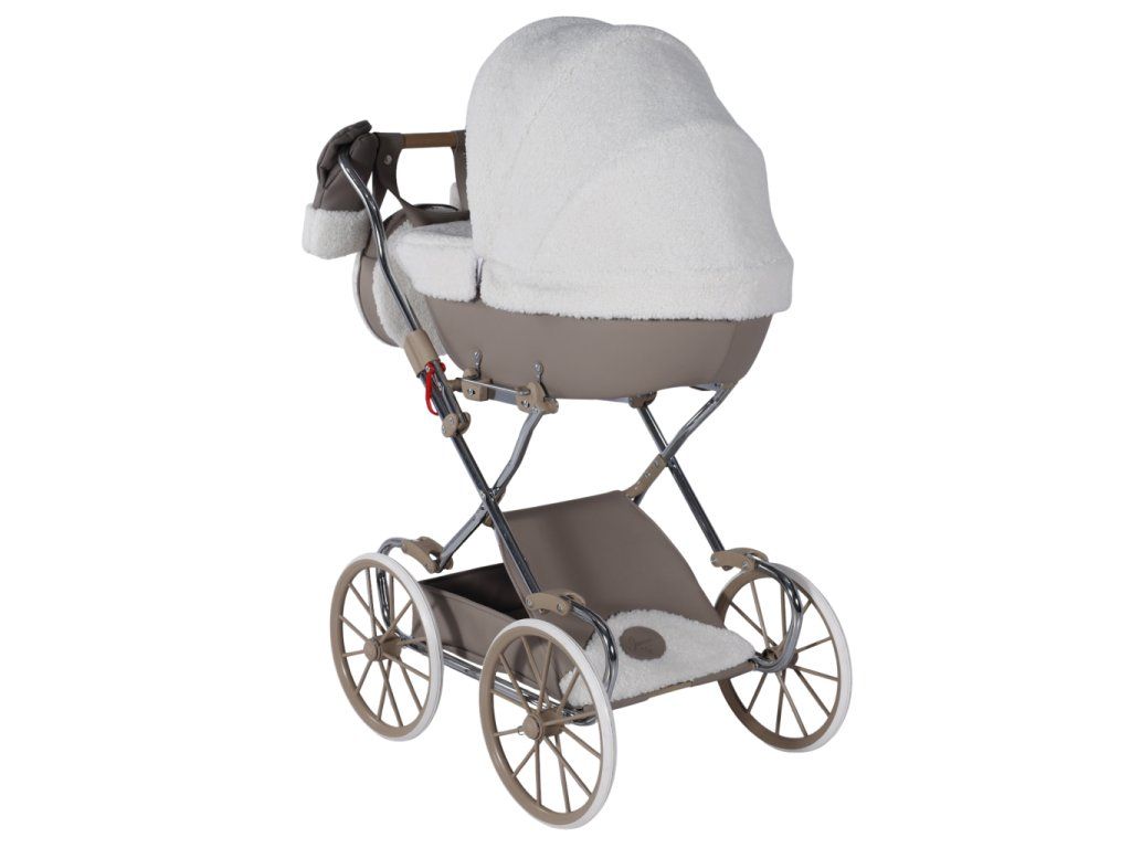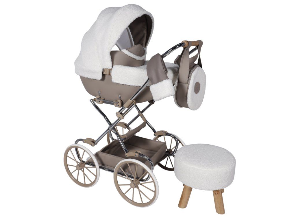 Kočárek se vyznačuje pečlivě vybranými materiály, které zajišťují trvanlivost a luxusní vzhled. Tapicerka z ekokůže je snadno čistitelná a odolná, zatímco materiál bouclé je měkký a příjemný na dotek. Skládací budka chrání panenku před sluncem, větrem a deštěm.