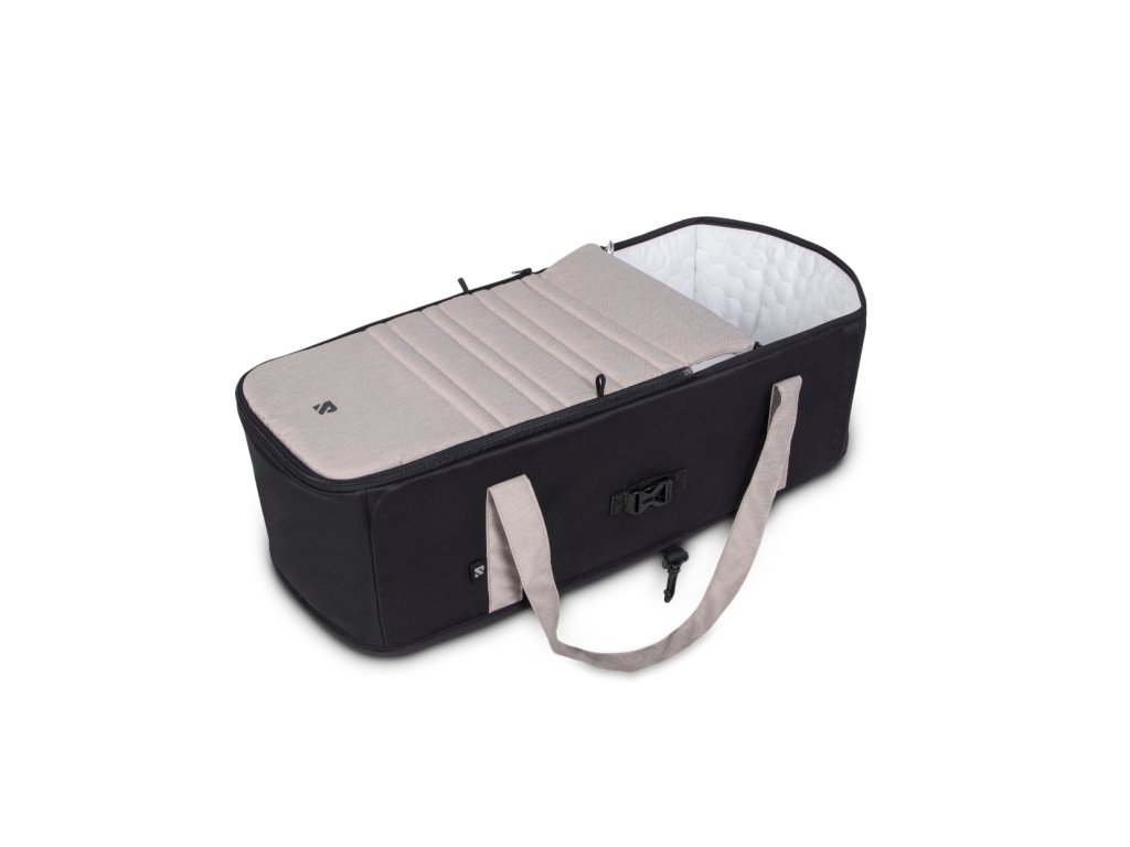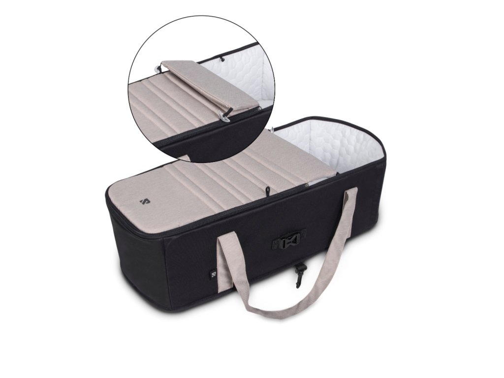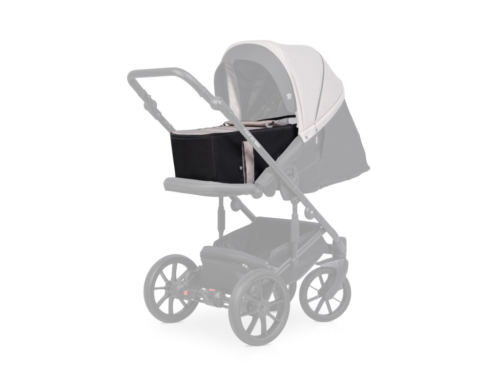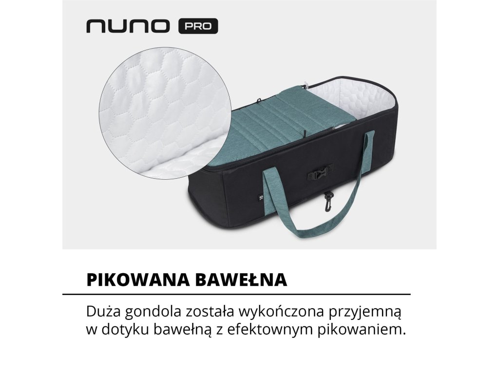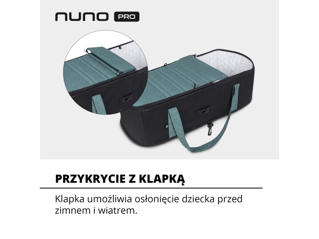 Kojenecká vložka (měkká korbička) kočárku Riko Nuno Pro 2v1 je polstrovaná bílou saténovou bavlnou a má držadla pro přenášení. Má dva nezávislé montážní systémy (kterými jednoduše přichytíte korbičku ke sporťáku) a univerzální otvory pro 5-bodové bezpečnostní pásy.