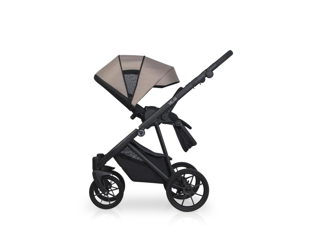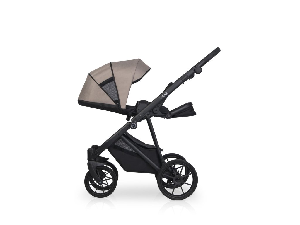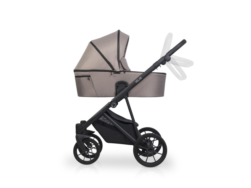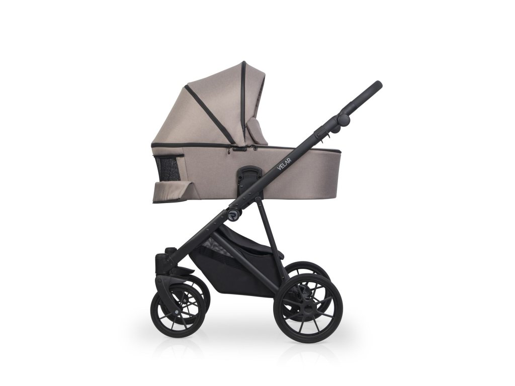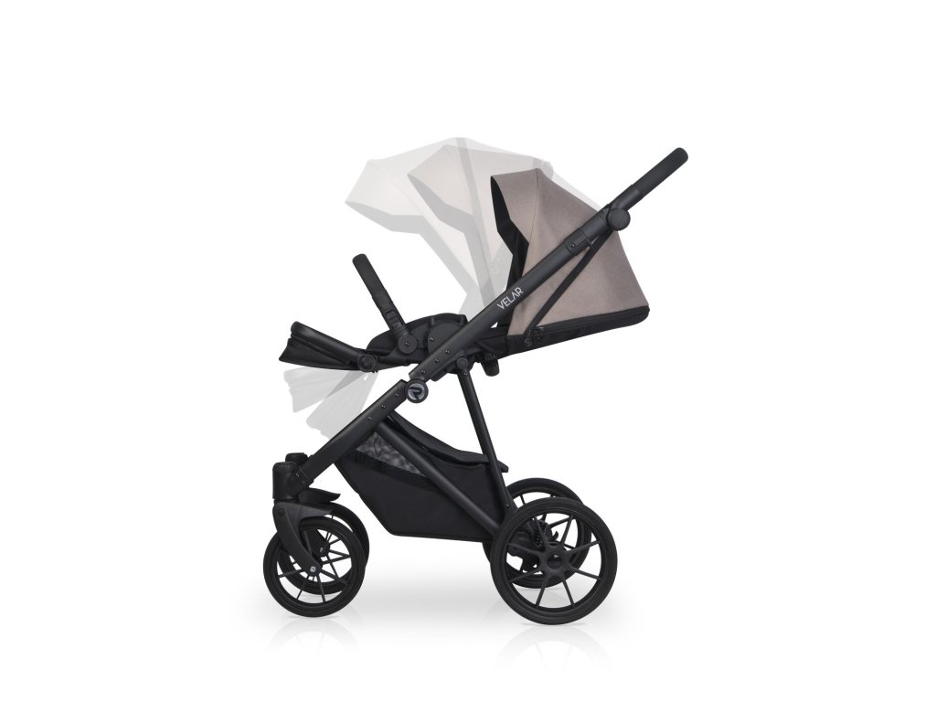 Kočárek zaujme svým estetickým a elegantním designem. Univerzální tlumené barvy zajistí, že si každý najde to své. Prostorný vnitřek gondoly v kočárku Velar je podšitý prošívanou bavlnou, díky které se gondola stává mimořádně útulným místem pro miminko. Sametová matrace plněná kokosovými vlákny podporuje zdravý vývoj neustále se vyvíjející páteře miminka. Vestavěná ventilace v gondole kočárku zajišťuje vynikající proudění vzduchu. Stříška je navržena tak, aby chránila před sluncem a větrem. Skvěle funguje možnost rozšíření o další část s ventilačními panely zajišťující maximální cirkulaci vzduchu.