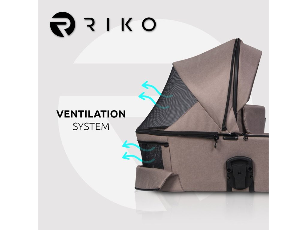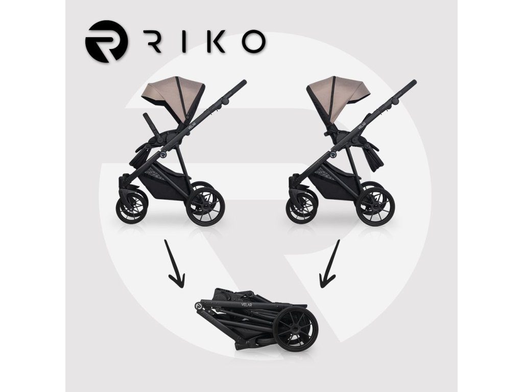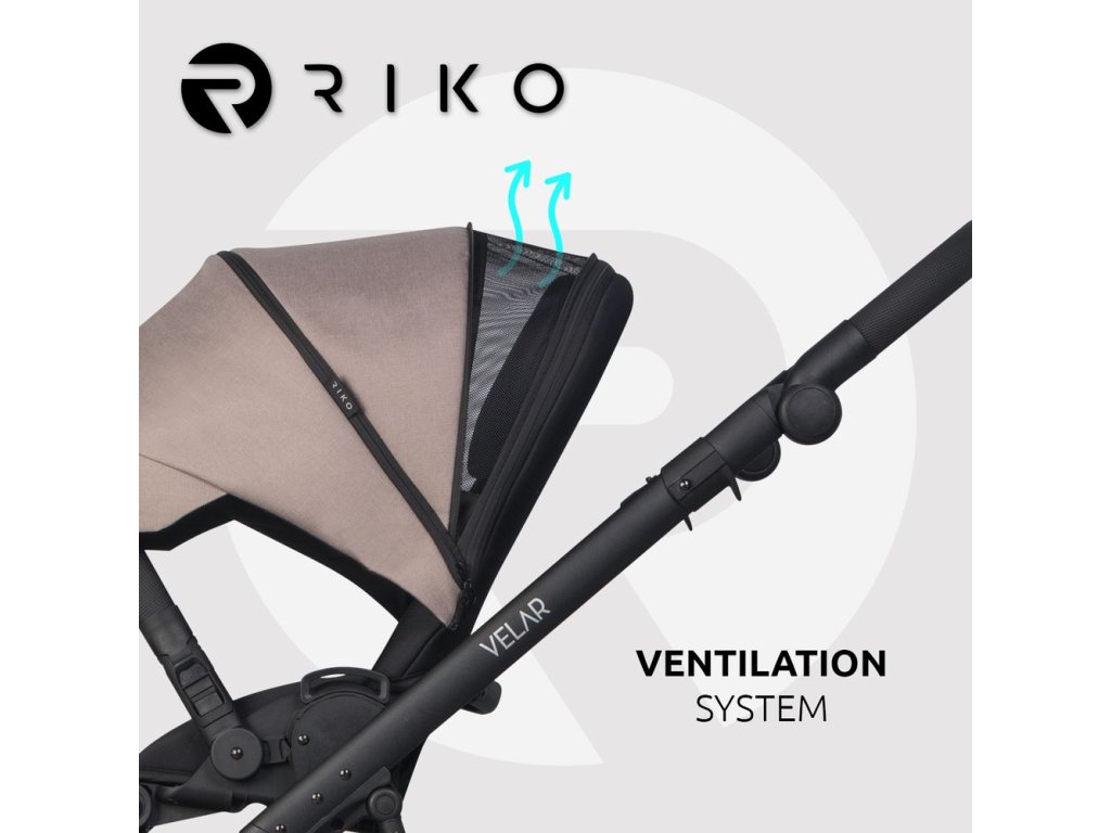 Riko Velar je k dispozici ve 2 barevných provedeních, čtyři základní barvy mají matnou černou povrchovou úpravu a jsou lemovány melanžovou látkou. Jedna dodatečná barva MAGMA má módní měděnou úpravu a čalounění je vyrobeno z 3D voštinové tkaniny. Svrchní látky mají navíc impregnaci, která způsobuje stékání vody z látek, když prší, a vestavěný filtr UV50+ ochrání vaše dítě před škodlivým slunečním zářením a poskytne dodatečnou ochranu proti vyblednutí barvy látky. Široká škála grafiky zajistí, že si každý rodič najde to své pro své miminko.