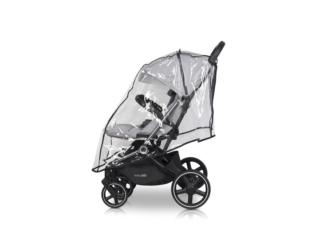 V sadě s kočárkem získáte dešťovou fólii s odvětrávači, která pokrývá celé čalounění kočárku a 2 teplé potahy na nohy, abyste si mohli užívat procházku za všech povětrnostních podmínek.