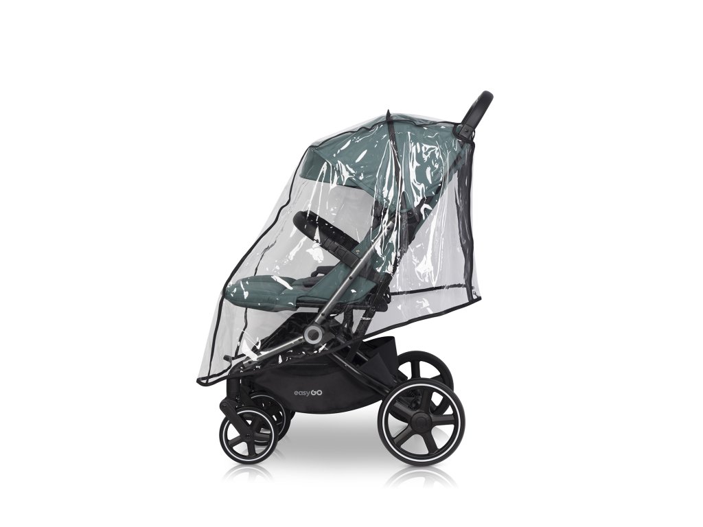 V sadě s kočárkem získáte dešťovou fólii s odvětrávači, která pokrývá celé čalounění kočárku a 2 teplé potahy na nohy, abyste si mohli užívat procházku za všech povětrnostních podmínek.