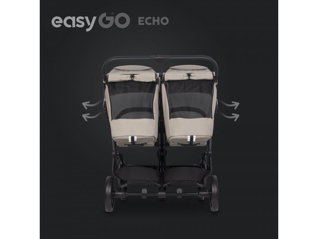Značka EASYGO je již více než 15 let předním výrobcem kočárků pro dvojčata a děti rok co rok. Naše zkušenosti promítají do vzniku stále lepších kočárků pro vaše děti. Navrhnout dobrý kočárek pro dvě děti není jednoduchý úkol, protože je třeba kombinovat pohodlí dětí s rozměry a hmotností kočárku, díky kterým bude pohodlně řídit a vejde do standardních dveří doma, v obchodě nebo ve výtahu. Tak vznikl dětský kočárek EASYGO ECHO - kombinující pohodlí dětí s komfortem rodičů.